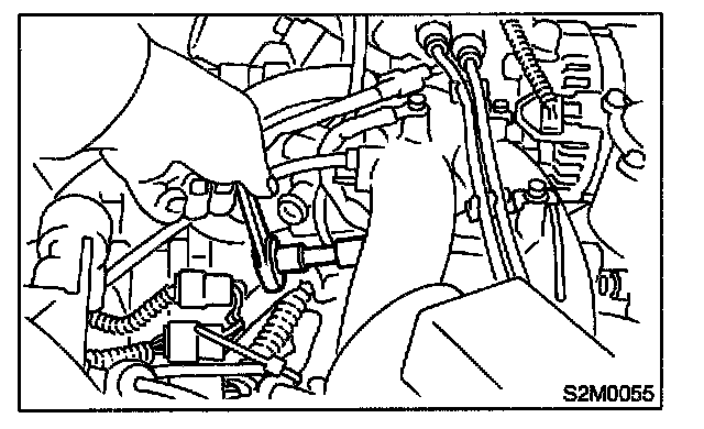4. Remove bolt which installs purge control solenoid valve to intake manifold.