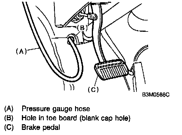 - Before measuring line pressure, apply both foot and parking brakes with all wheels chocked (Same as for "stall" test conditions).