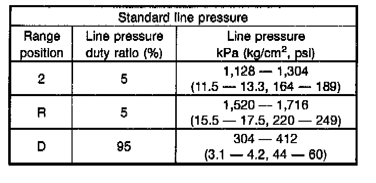 5. Check line pressure in accordance with the following chart.