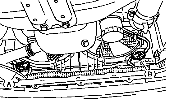5. Disconnect connectors of radiator main fan (A) and sub fan (B) motors.
