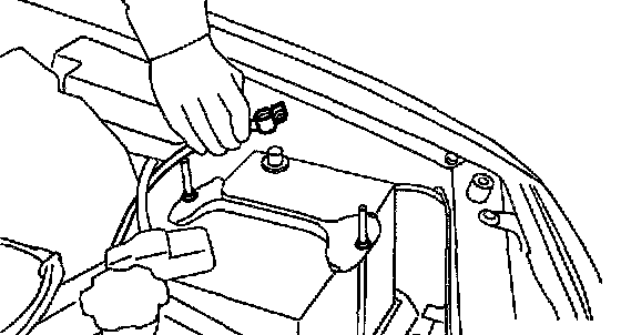 NOTE: Fit cushion on lower side of radiator into holes on body side.
