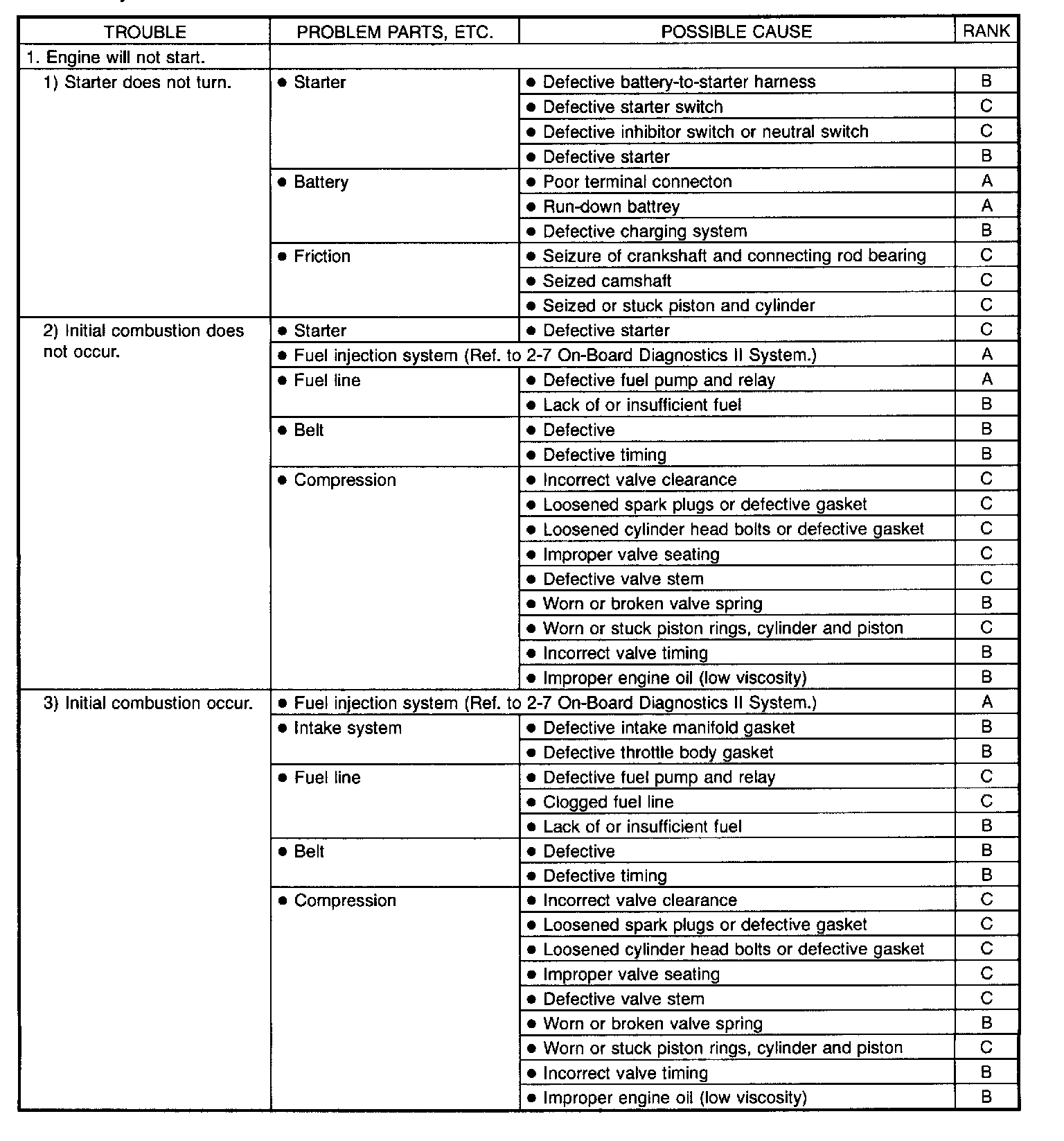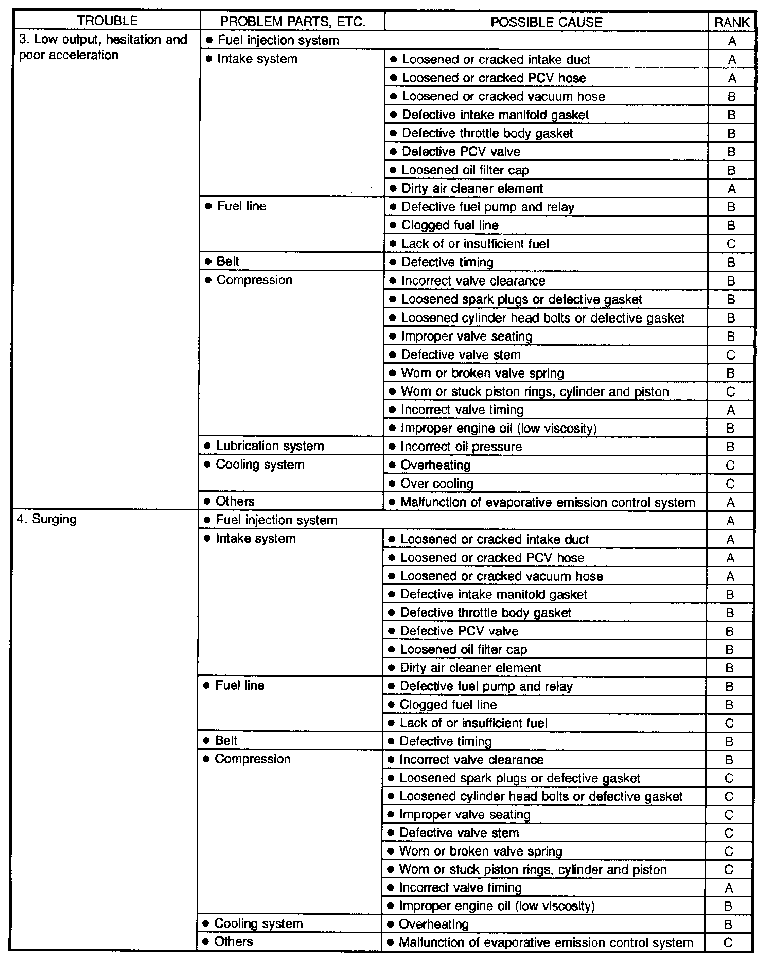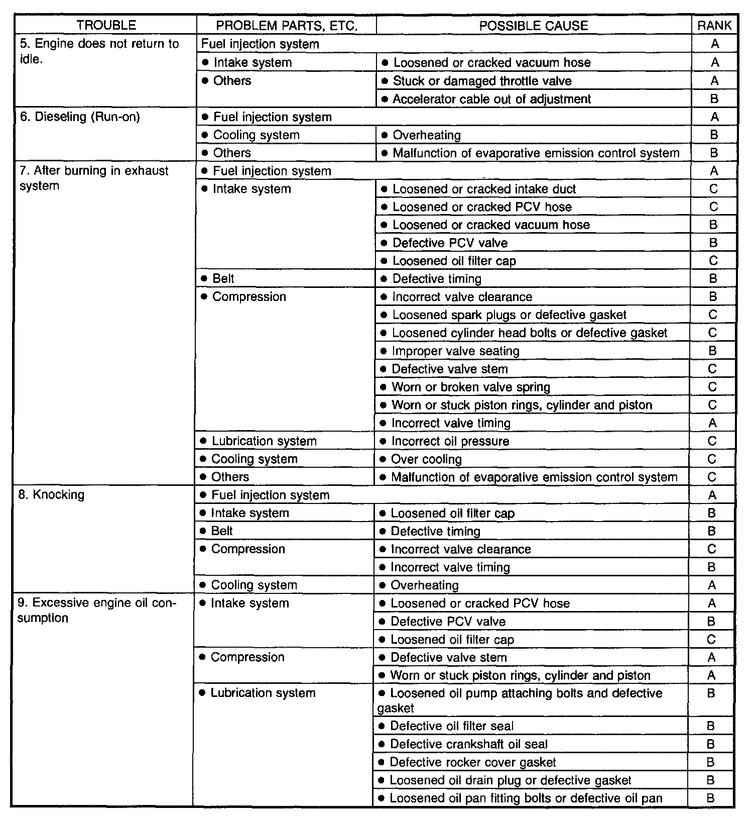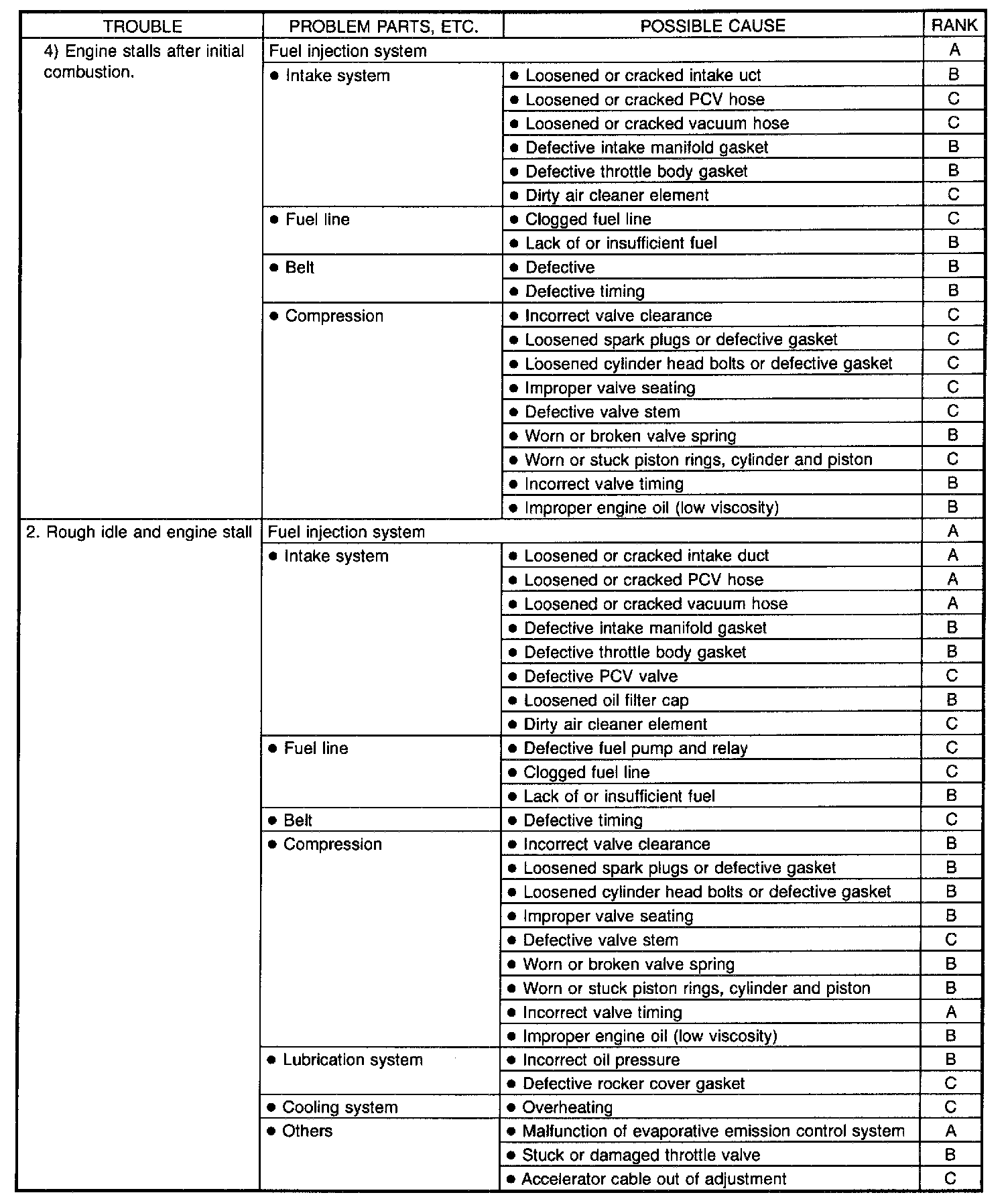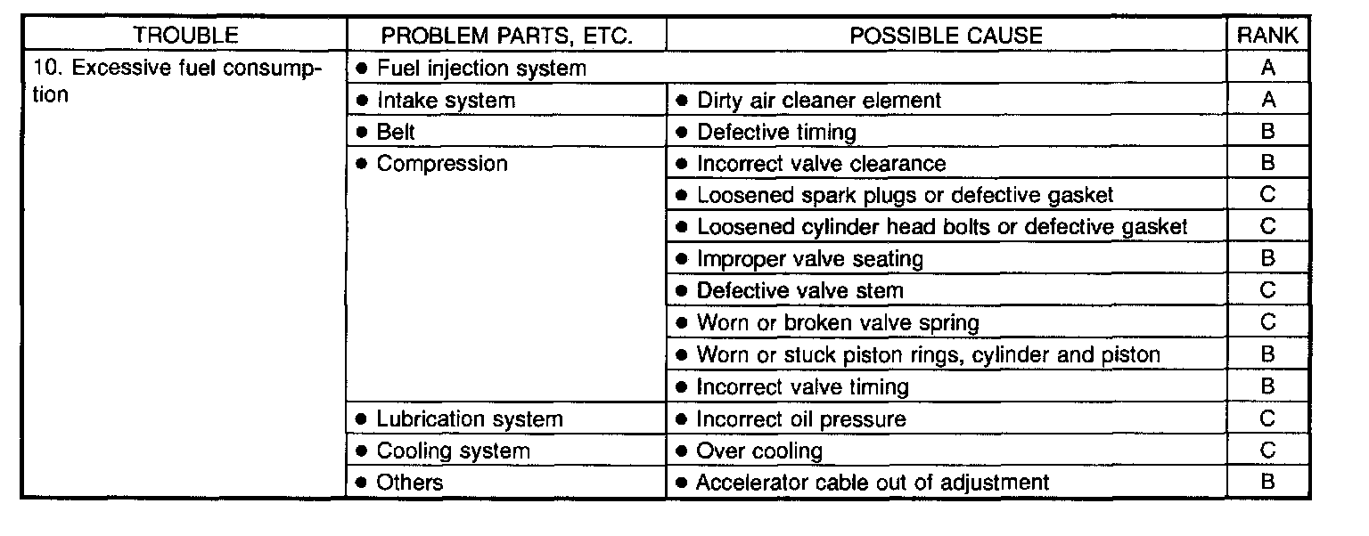 NOTE: "RANK" shown in the chart refer to the possibility of reason for the trouble in order ("Very often" to "Rarely")