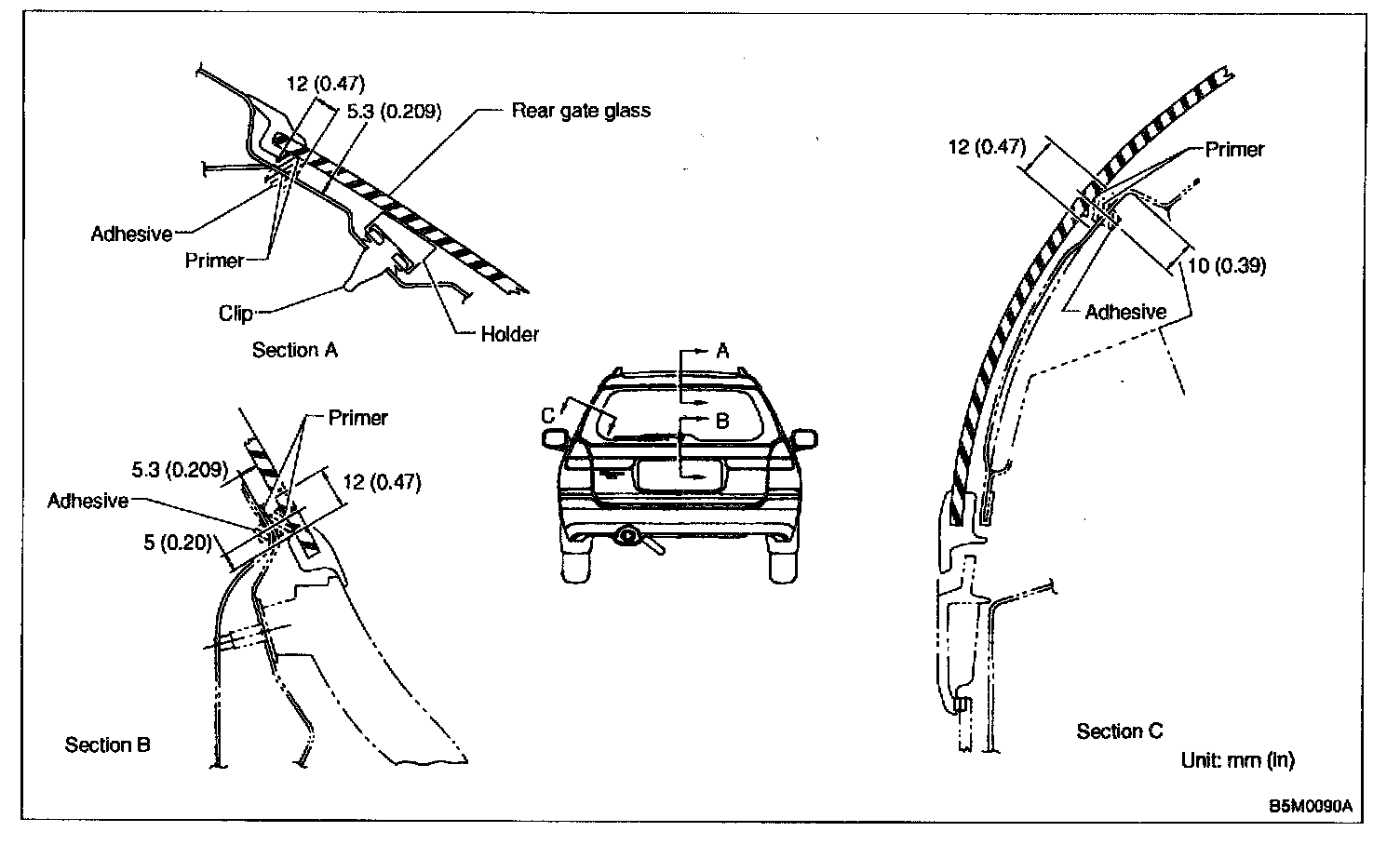 2. Install glass in the same manner as in windshield.