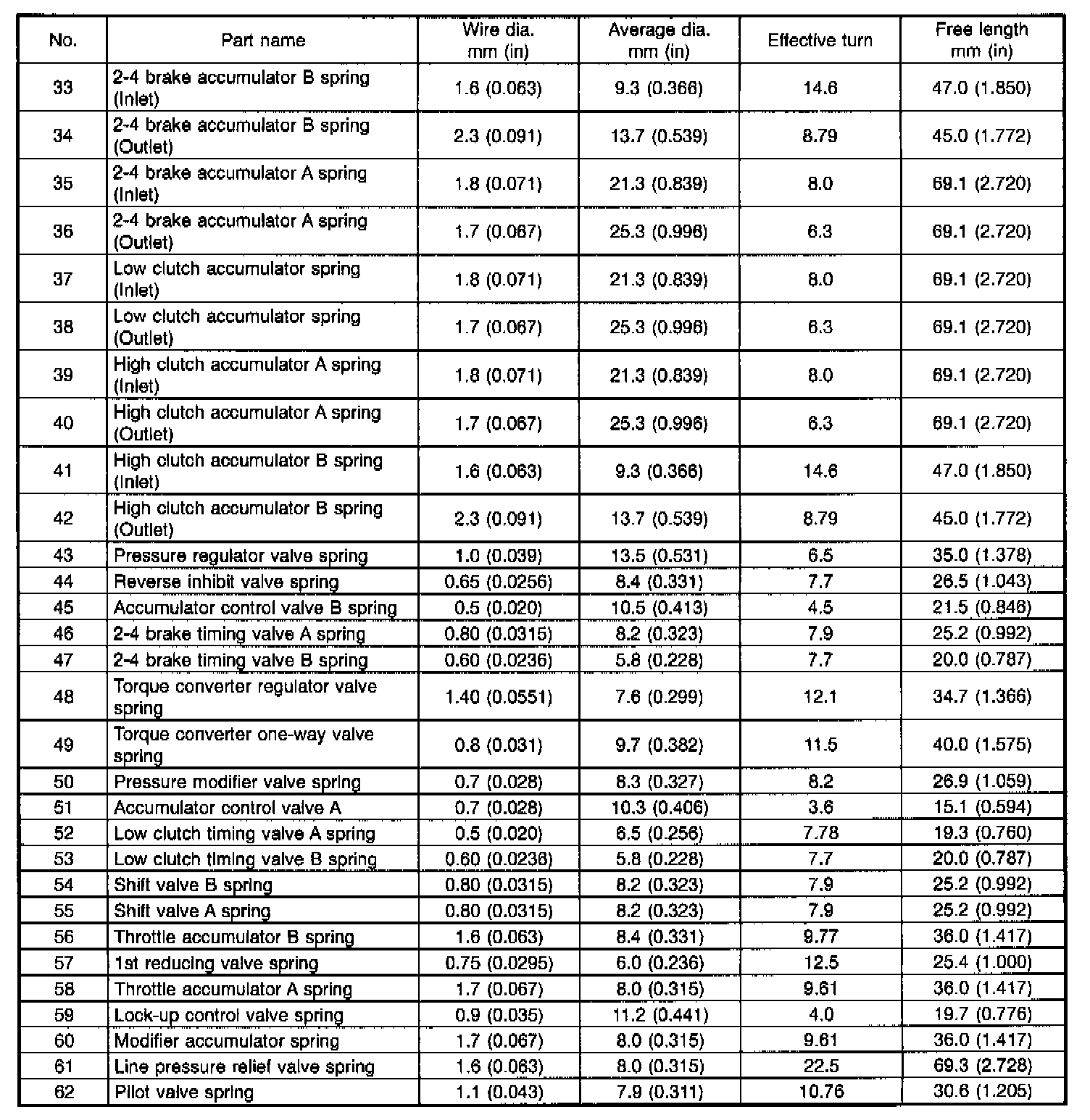 A: PRECAUTIONThe control valve is composed of parts which are accurately machined to a high degree and should be handled carefully during disassembly and assembly. As these parts are similar in shape, they should be arranged in neat order on a table after disassembly so that they can be easily installed to their original positions. Spring loaded parts should be also handled carefully, as springs may jump out of place when the parts are disassembled or removed. Extreme care should be taken so as not to drop valves on the floor. Before assembling, the parts and valves should be dipped in a container filled with the ATF. Make sure that the valves are clean and free from any foreign material before assembly. Torque specifications should also be observed.