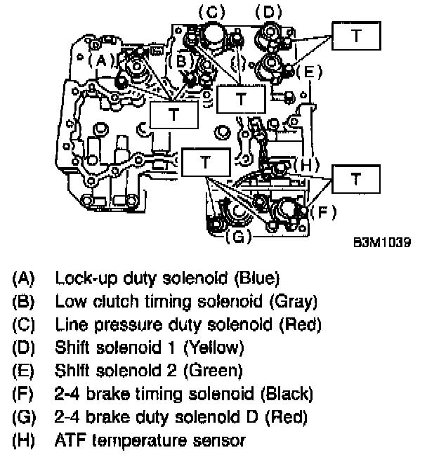 2. Remove the duty solenoid S. solenoids and sensor from the lower valve body.