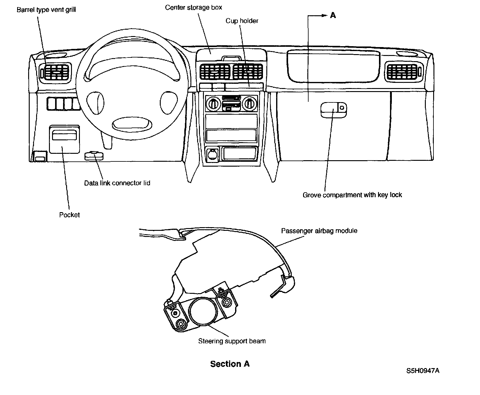 - A support beam connecting the left and right pillars is installed at the back of the instrument panel. The instrument panel is mounted on the support beam.