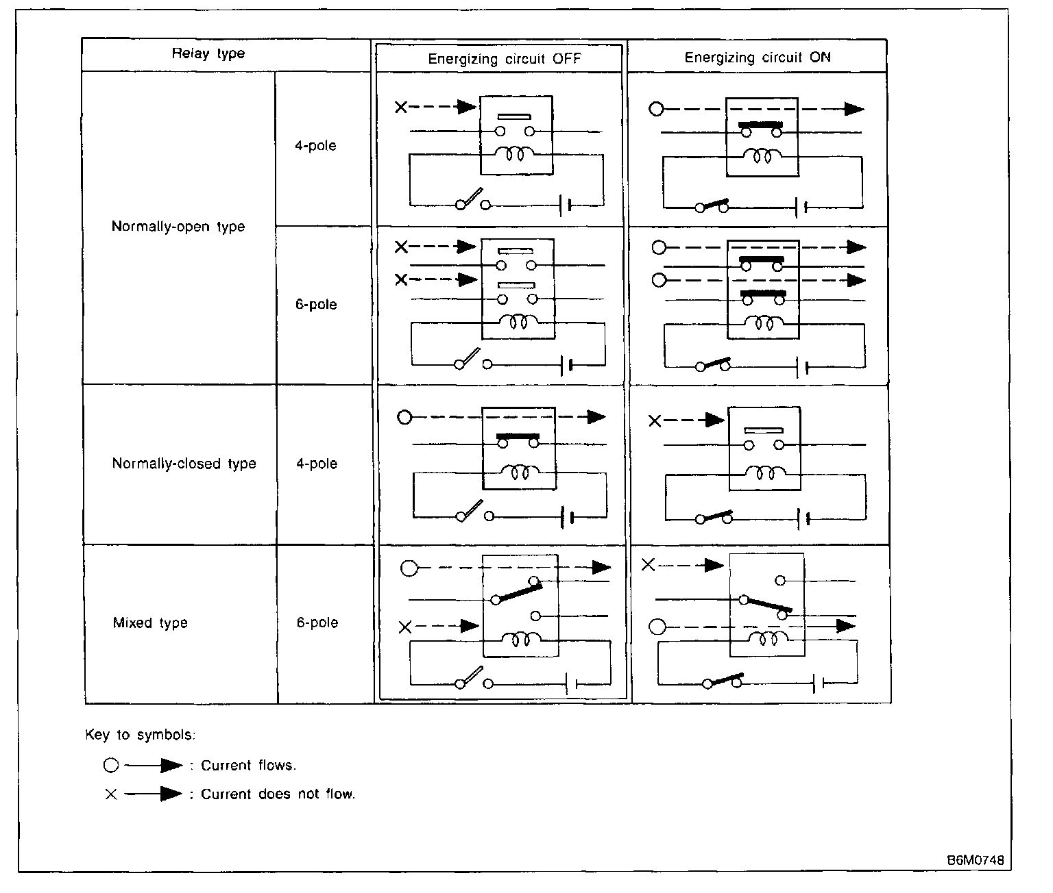 The wiring diagram shows the relay mode when the energizing circuit is OFF.