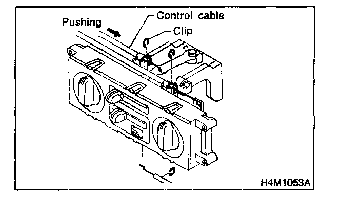 2. Install control cable to lever. While pushing outer cable, secure control cable with clip.