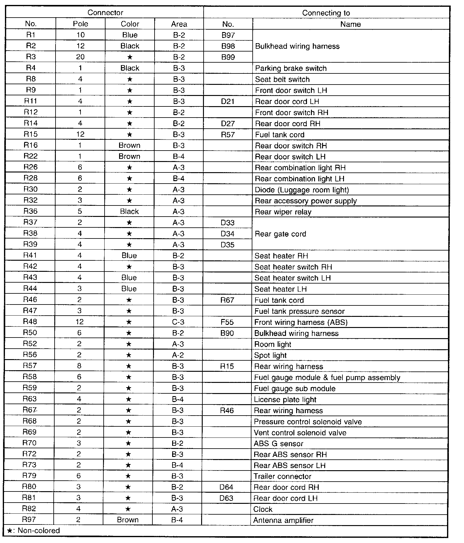 Rear Wiring Harness - List Of Items: