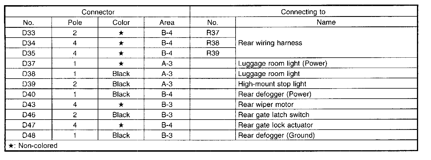 Rear Gate Cord - List Of Items: