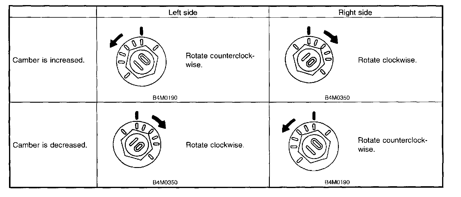 2. Turn camber adjusting bolt so that camber is set at the specification.