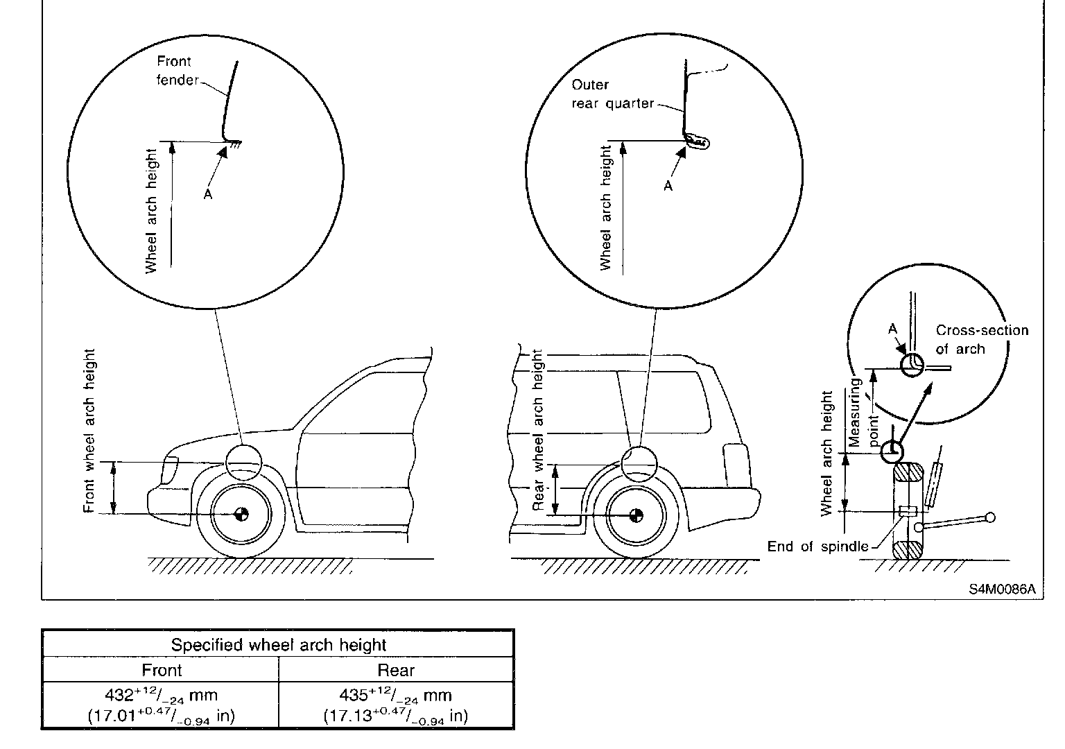 2. Set vehicle under "curb weight" conditions. (Empty luggage compartment, install spare tire, jack, service tools, and top up fuel tank.)