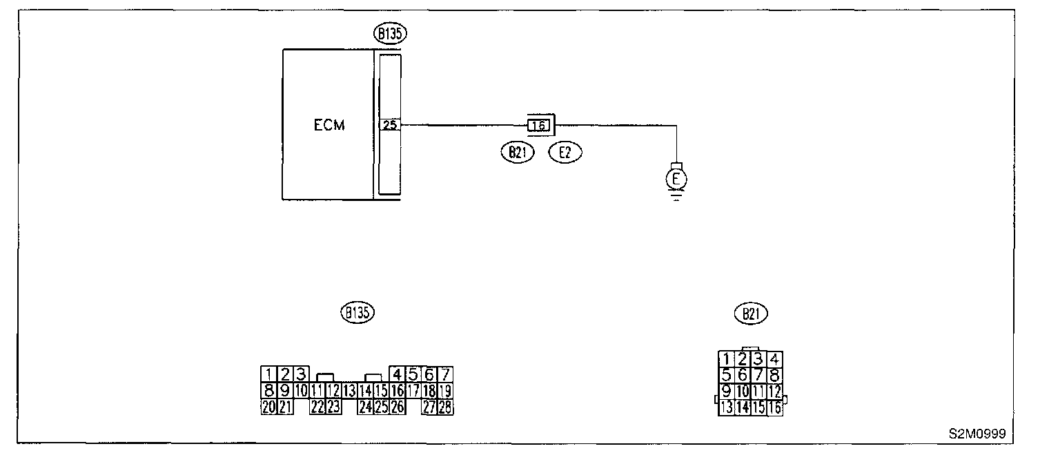 - Open circuit in harness between ECM connector and engine grounding terminal