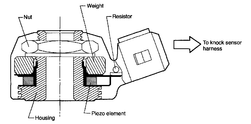 - It consists of a piezo-electric element, weight, and case. If knocking occurs in the engine, the weight in the case moves causing the piezo-electric element to generate a voltage.