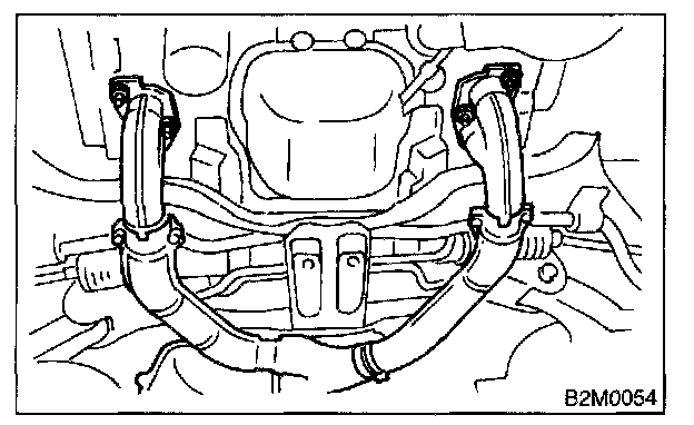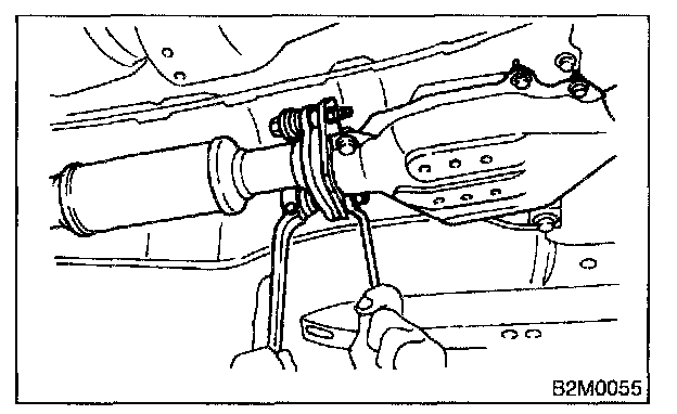 - After removing center exhaust pipe, do not apply excessive pulling force on rear exhaust pipe.