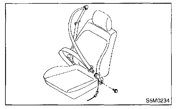 REMOVAL AND INSTALLATIONWARNING: Replace front seat belt worn by occupants of a vehicle that has been in a serious accident. The entire assembly should be replaced even if damage is not obvious.