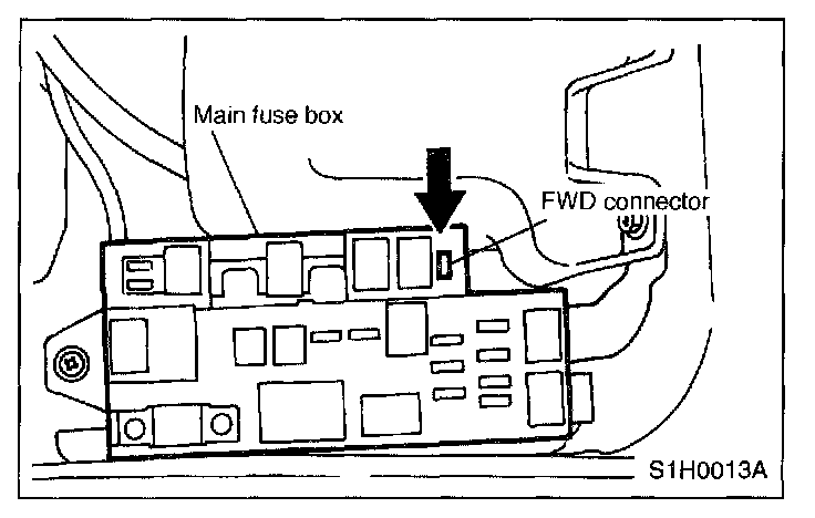 To set the car in the FWD mode., disconnect the AWD circuit by inserting a fuse in the FWD connector inside main fuse box. Also chock the rear wheels firmly.