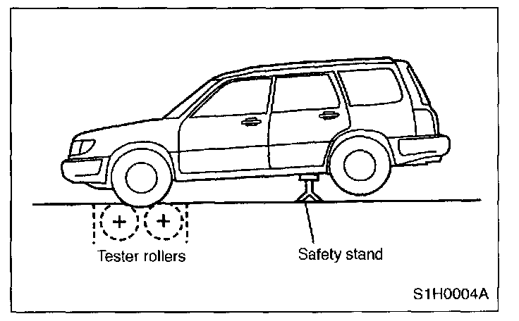 1. Position vehicle so that front wheels are placed between rollers of speedometer test machine.
