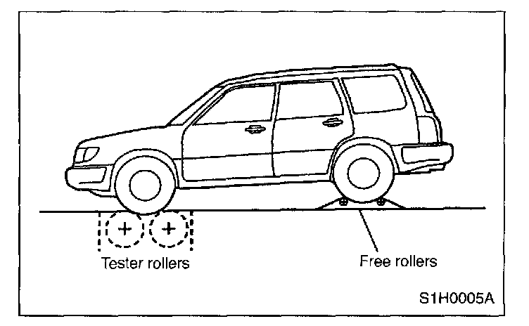- Do not abruptly depress/release clutch pedal or accelerator pedal during tests even when engine is operating at low speeds since this may cause vehicle to jump off test machine.