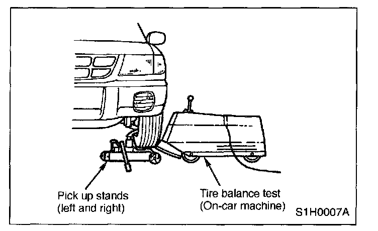 1. Raise vehicle so that left and right wheels to be checked clear the floor. Support wheels using pick-up stands.