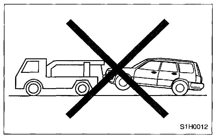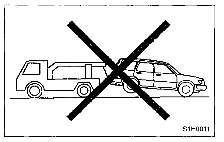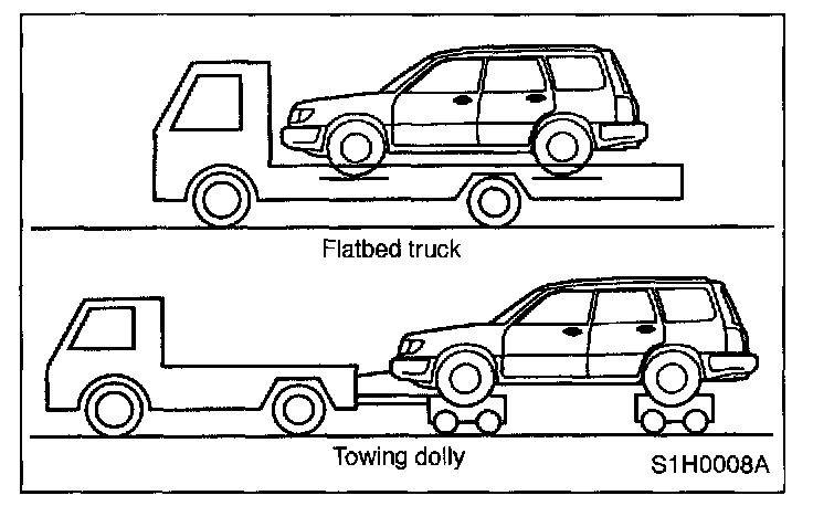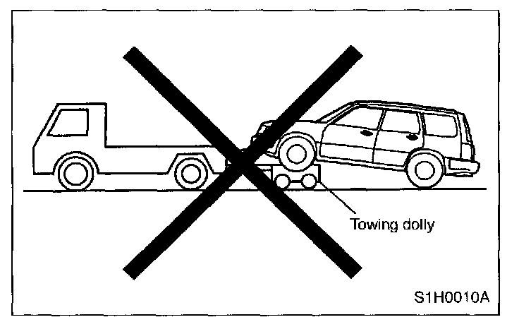 - Do not tow vehicle with only front or rear wheels placed on towing dolly or flat-bed truck. This may degrade viscous coupling performance or cause vehicle to jump off dolly or truck.