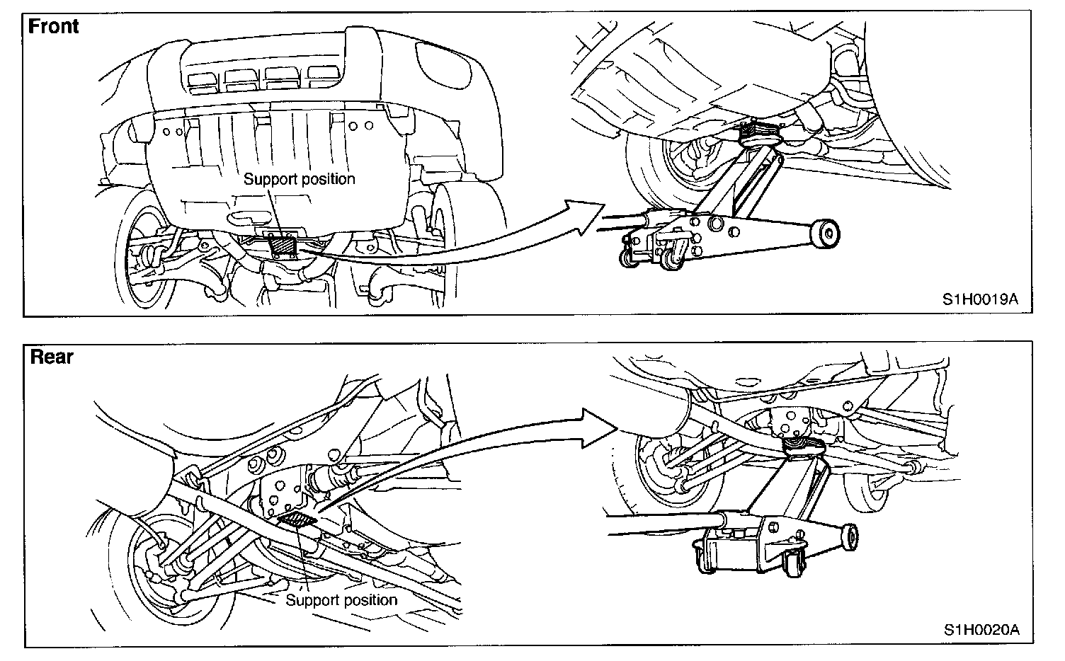 - Be sure to lift vehicle at the same four positions as those for pantograph jack.