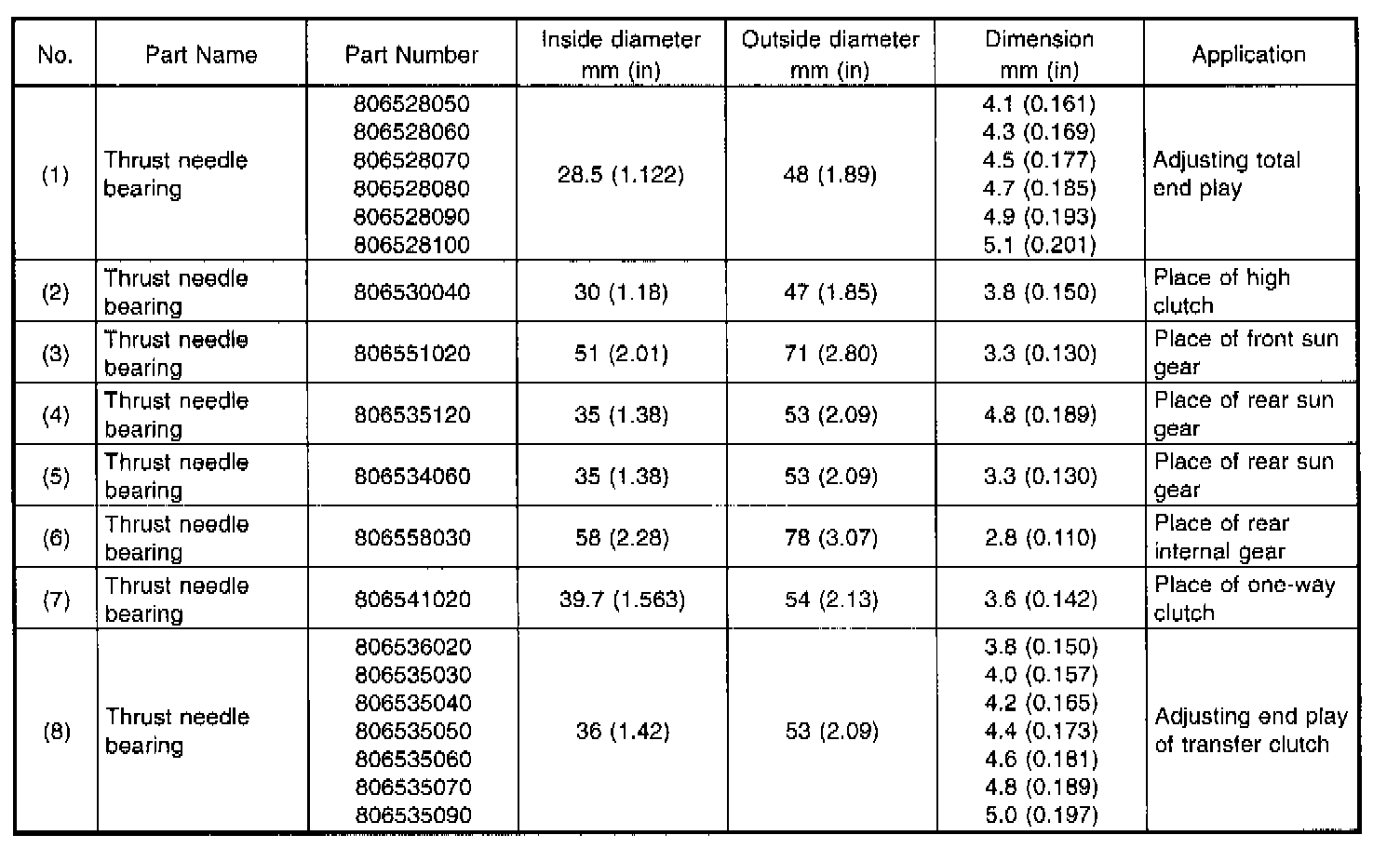 LOCATION AND INSTALLING DIRECTION OF THRUST NEEDLE BEARING