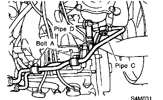 7. Disconnect pipe C from oil pump. Disconnect pipe D from oil tank.