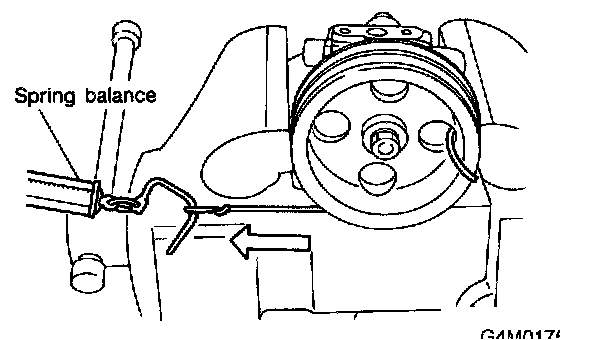 4. Loosen oil pump pulley nut, then remove bolts which secure alternator.