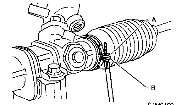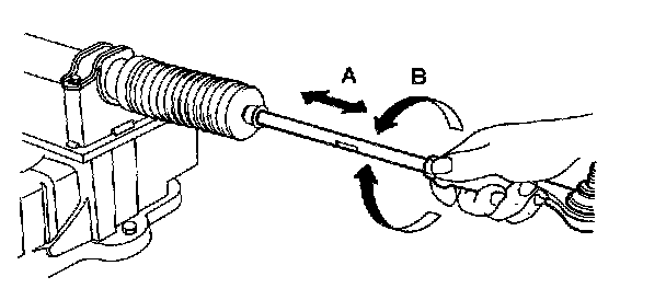 14. Inspect gearbox as follows: "A" Holding tie-rod end, repeat lock to lock two or three times as quickly as possible. "B" Holding tie-rod end, turn it slowly at a radius one or two times as large as possible. After all, make sure that boot is installed in the specified position without deflation.