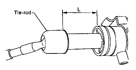 13. If tie-rod end was removed, screw in lock nut and tie-rod end to screwed portion of tie-rod, and tighten lock nut temporarily in a position as shown in figure.