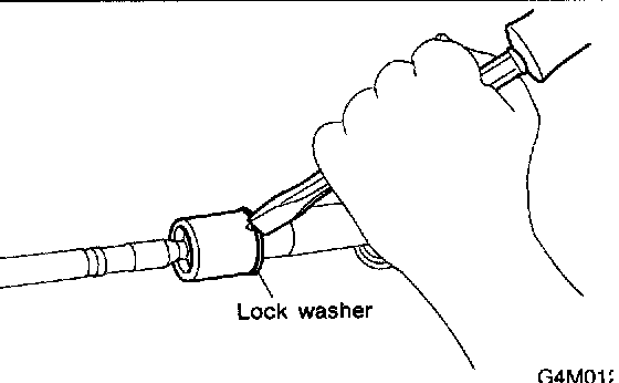 CAUTION: Be careful not to scratch rack when bending lock washer.