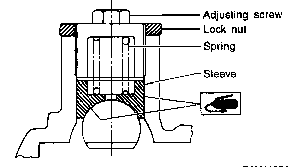 5. Apply grease to sliding surface of sleeve and spring seat, then insert sleeve into pinion housing. Fit spring into sleeve screw, pack grease inside of screw, then install the screw.