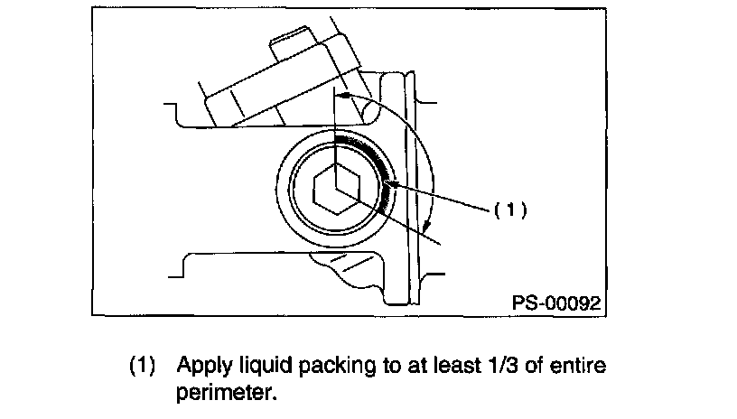 5. Apply liquid Packing to at least 1/3 of entire perimeter of adjusting screw thread.