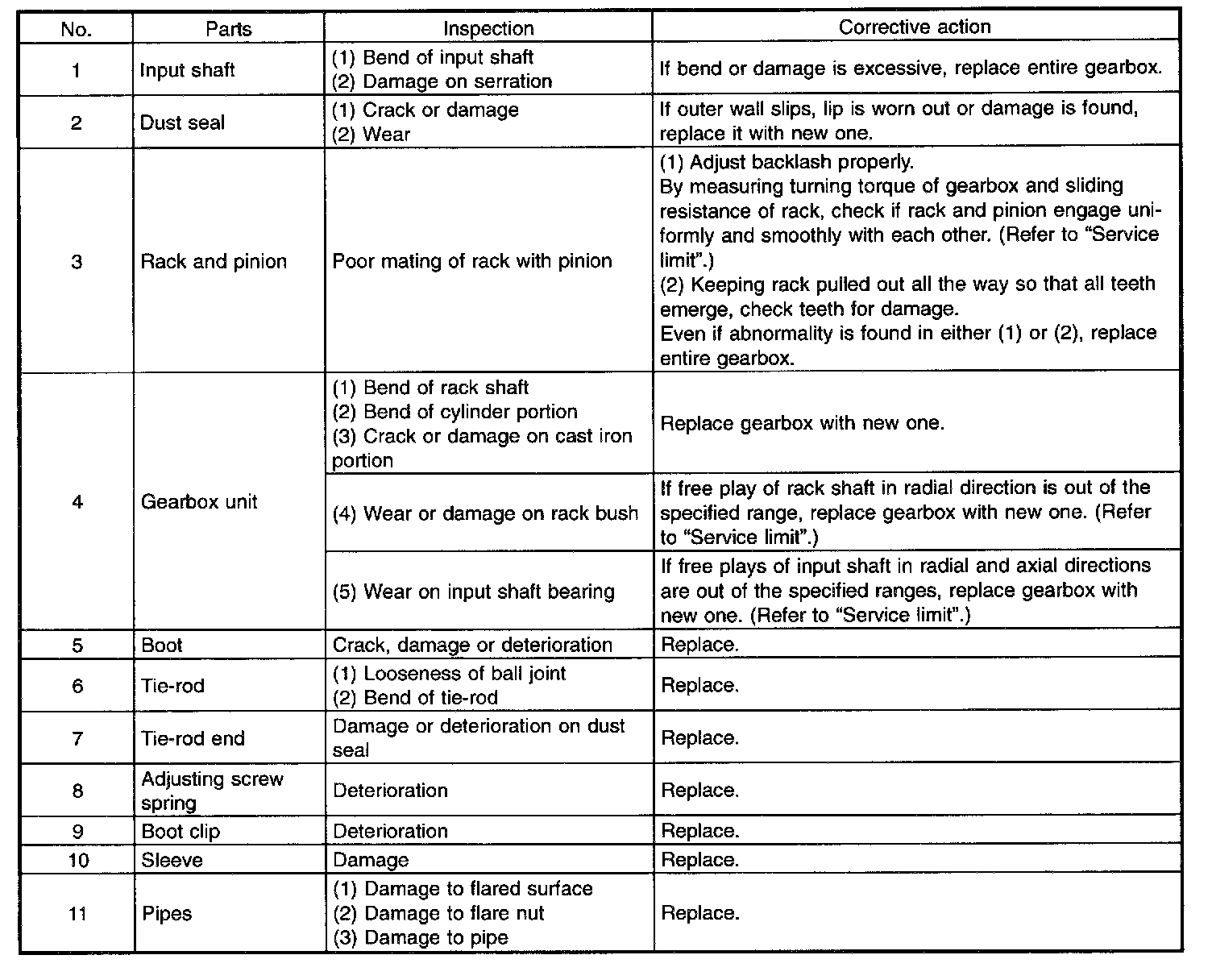 2. When disassembling, check inside of gearbox for water. If any water is found, carefully check boot for damage, input shaft dust sea[, adjusting screw and boot clips for poor sealing. If faulty, replace with new parts.