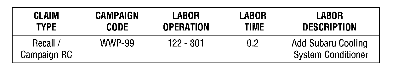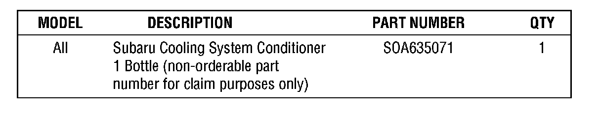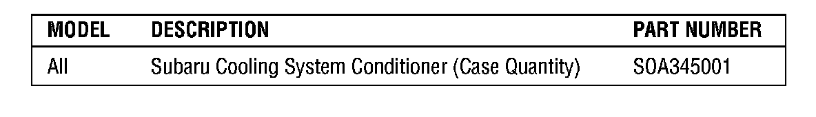 This Service Program will involve adding one bottle of Genuine Subaru Cooling System Conditioner to the engine cooling system.
