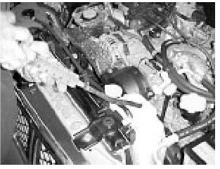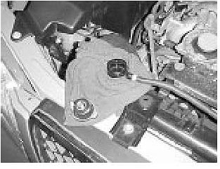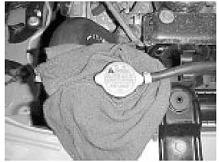 1. Install rags around the radiator filler neck to prevent coolant from contaminating the engine area.