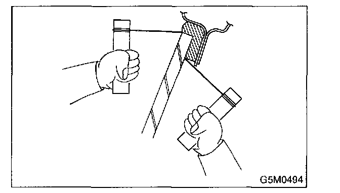4. Cut adhesive layer with the wire by pulling it back and forth.
