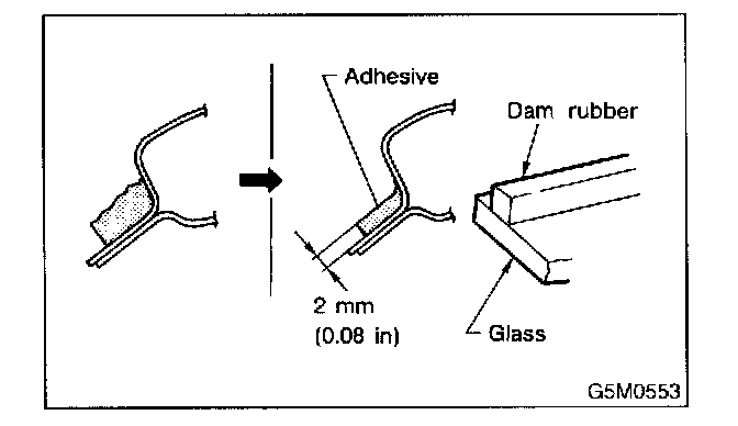 1. After cutting layer of adhesive, remove dam rubber remaining on body.