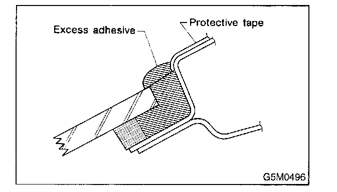 CAUTION: When making through-hole into adhesive layer and cutting the adhesive, be careful not to damage interior and exterior parts.