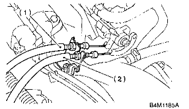 3. Separate accelerator cable (1) from bracket, then unlock inner cable.
