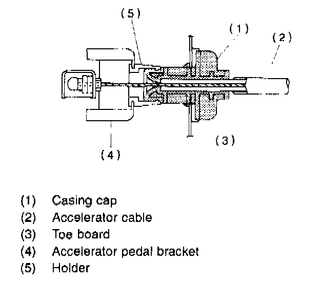 5. Disconnect cable end from accelerator cable bracket inside driver compartment.