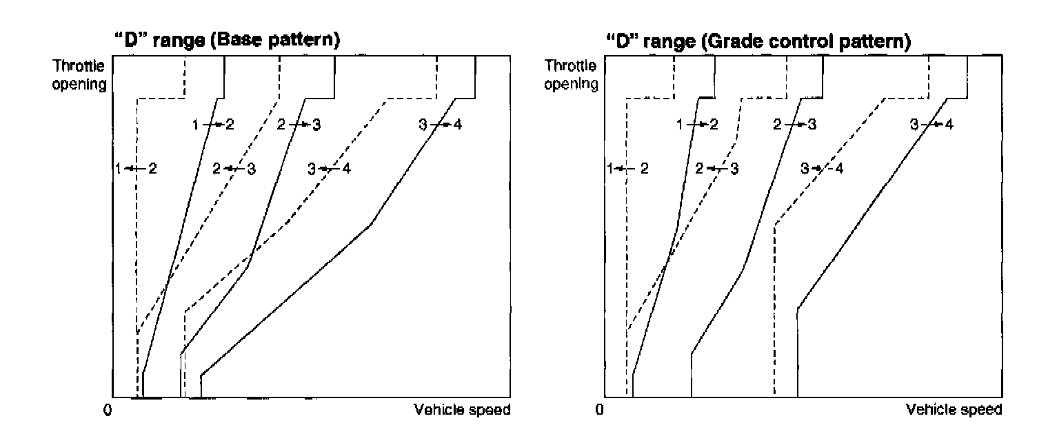 Gearshifting is controlled in response to driving conditions, according to the shift point characteristic data stored in the TCM. Solenoids are operated at the proper time corresponding to the shift pattern, throttle position, and vehicle speed for smooth shifting.