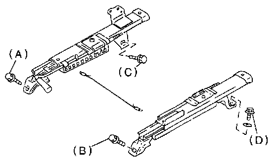 9. If any mechanism does not function properly, loosen bolts (C) and (D), slide seat as required, insert all lock plate pawls into holes in slide rail brackets, and tighten bolts (C) and (D) in that order.