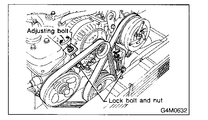 After adjusting V-belt tension, tighten generator bracket lock bolt securely.