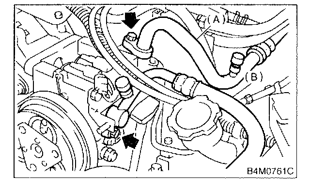 3. Remove low-pressure hose (A) (Flexible hose Ps) and high-pressure hose (B) (Flexible hose Pd).