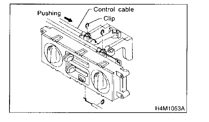 2. Install control cable to lever. While pushing outer cable, secure control cable with clip.