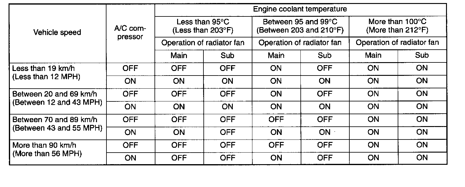 according to the operating modes shown in the following table.