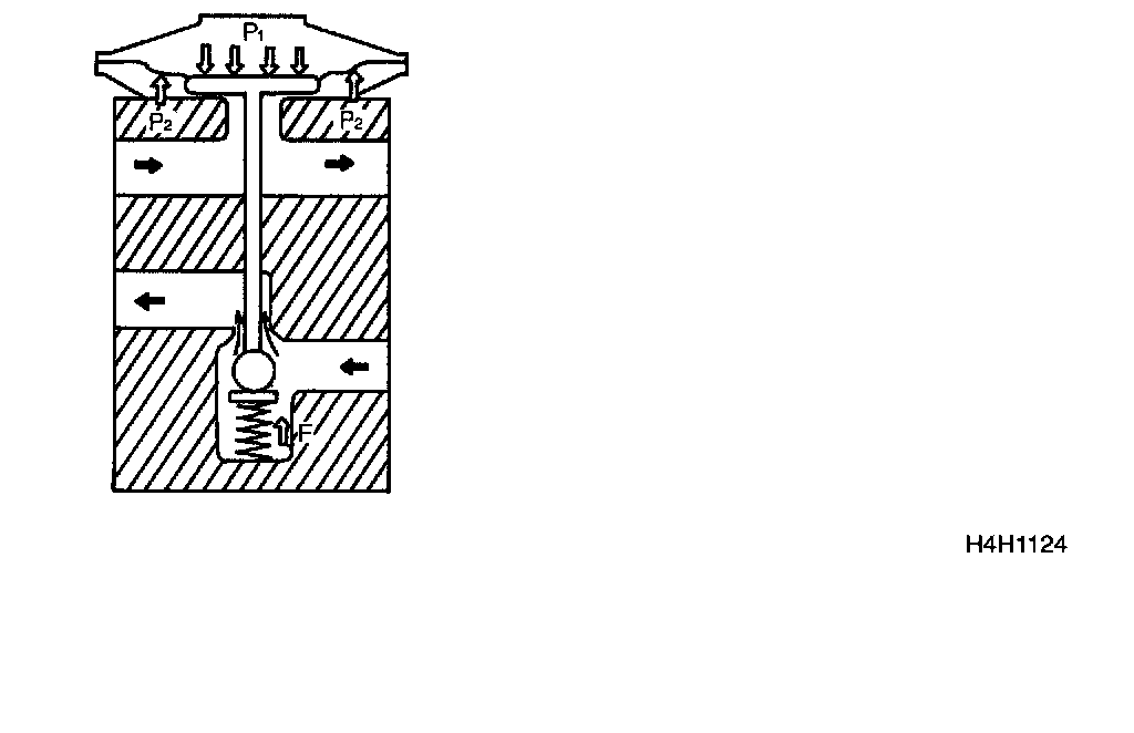 Expansion ValveIf the heat load of the air conditioner system increases, the refrigerant temperature at the evaporator outlet rises and therefore increases the pressure P(1) at around the temperature sensing area. As this pressure P(1) becomes higher than the resultant force of evaporator outlet (low pressure side) pressure P(2) and the spring force F (P(1) > P(2) + F), the diaphragm is pressed down, opening the valve ball connected to the diaphragm to increase the flow of the refrigerant.