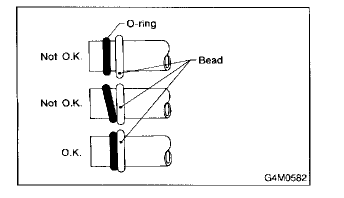 2. Visually inspect the O-ring surface, the O-ring mating surface, the threads and the connection points. If a defective part is found, replace it. The O-ring must sit square against the tube bead. If necessary, slide the O-ring into proper position with clean hands.